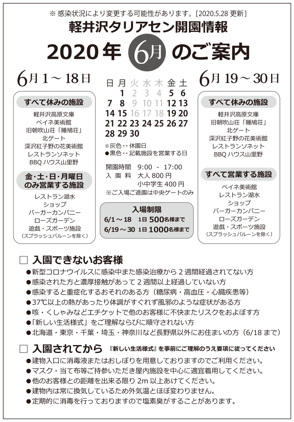 【重要】2020年6月開園・休園のお知らせ [2020.5.28更新]
